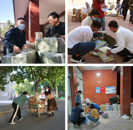这两天的校园里处处充满着温暖的画面。为确保学生返校和2022级新生进校各项工作安全、有序,针对学生进校后一周宿舍封闭管理的防控要求,为保证周一学生线上授课的顺利进行,全校二级学院组织全体教职工为学生搬运、分发教材,成为金秋校园里一道亮丽的风景。