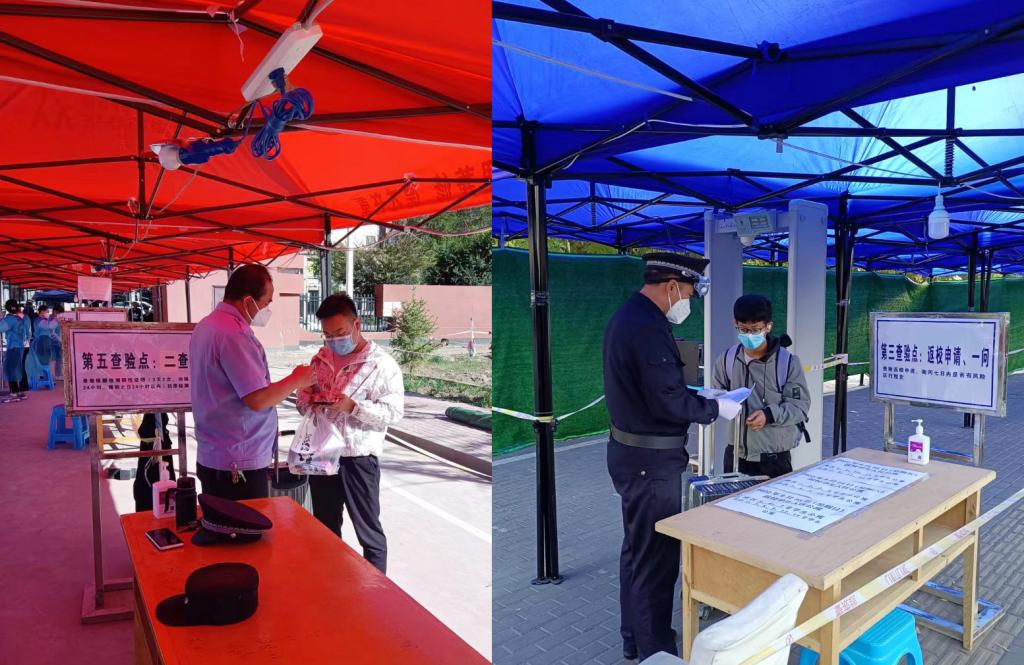在学生返校期间,包抓领导、党委常委、副校长顾长兆亲临现场,靠前指挥,到校园出入口等地查看学生返校安保情况和查验情况,要求在工作中既体现爱的关怀,又体现严的要求,以“时时放心不下”的责任感,一丝不苟做好各项工作。安稳部全体人员坚守岗位,相互协作,全天候迎接学子归来,并按照疫情防控要求,认真落实学生入校“一扫四查”,规范查验流程,把牢入口安全关;在校园及周边路段设置醒目交通引导标志和警戒线,确保校园及周边道路交通有序;加强对学生宿舍等重点部位的巡查,提醒新生管理好行李物品;加强校园巡逻,有效维护校园秩序。在学生返校前积极同地方交警和公安部门沟通协调,校警联动,充分维护校园周边交通秩序和治安秩序,全力以赴为学生返校工作提供保障,确保了校园内外的安全和稳定。
