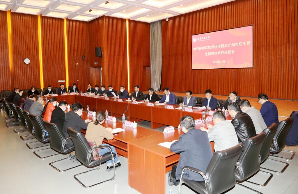 11月18日上午,山东师范大学在长清湖校区文昌楼为我校首批教育部师范教育协同提质计划赴山东师范大学挂职干部和访学进修教师举行了欢迎座谈会。山东师范大学党委副书记、校长曾庆良出席座谈会,山东师范大学党委办公室、校长办公室、党委组织部、党委宣传部、人力资源处、教务处、研究生院、财务处、后勤管理处等职能部门和相关学院的负责人及我校挂职干部和访学进修教师参加座谈会。座谈会由山东师范大学党委常委、副校长张茂聪主持。