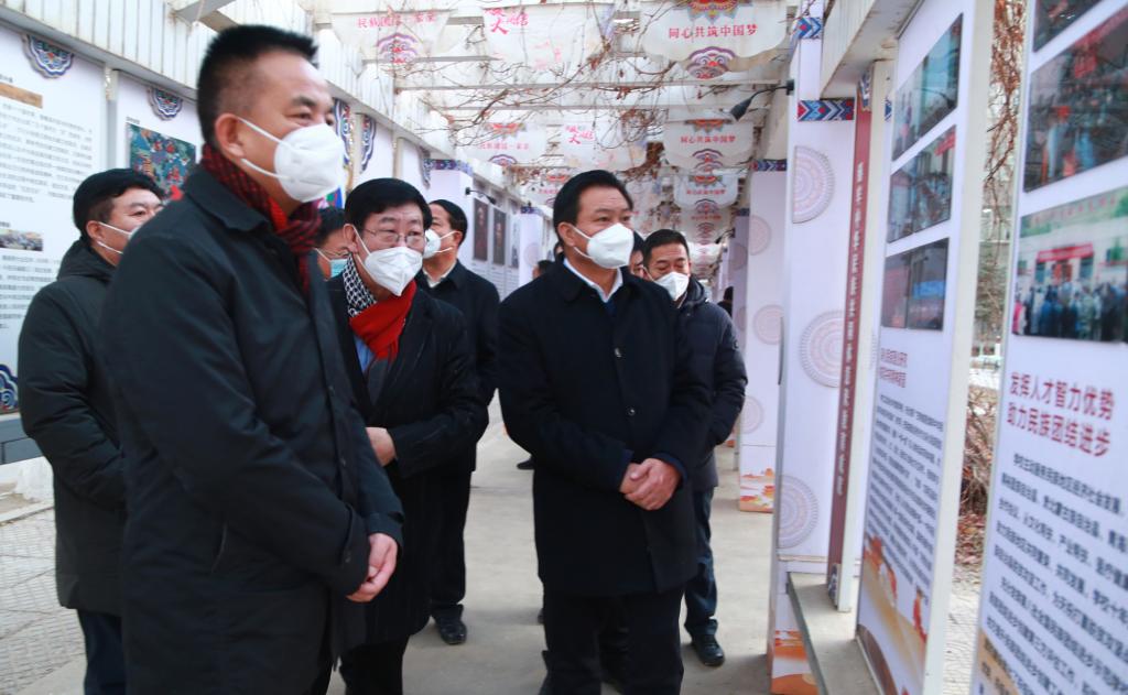 1月7日下午,省委统战部副部长、省民委党组书记、主任赵凌云一行5人来校考察调研。张掖市政府党组成员、副市长、市公安局党组书记、局长乔振华,校党委书记梁兆光,校长张汉燚陪同调研。赵凌云一行参观了民族文化大道及文化长廊、民族雕塑群、民族文化壁画、河西历史文化馆,深入甘肃省铸牢中华民族共同体意识研究基地指导工作。