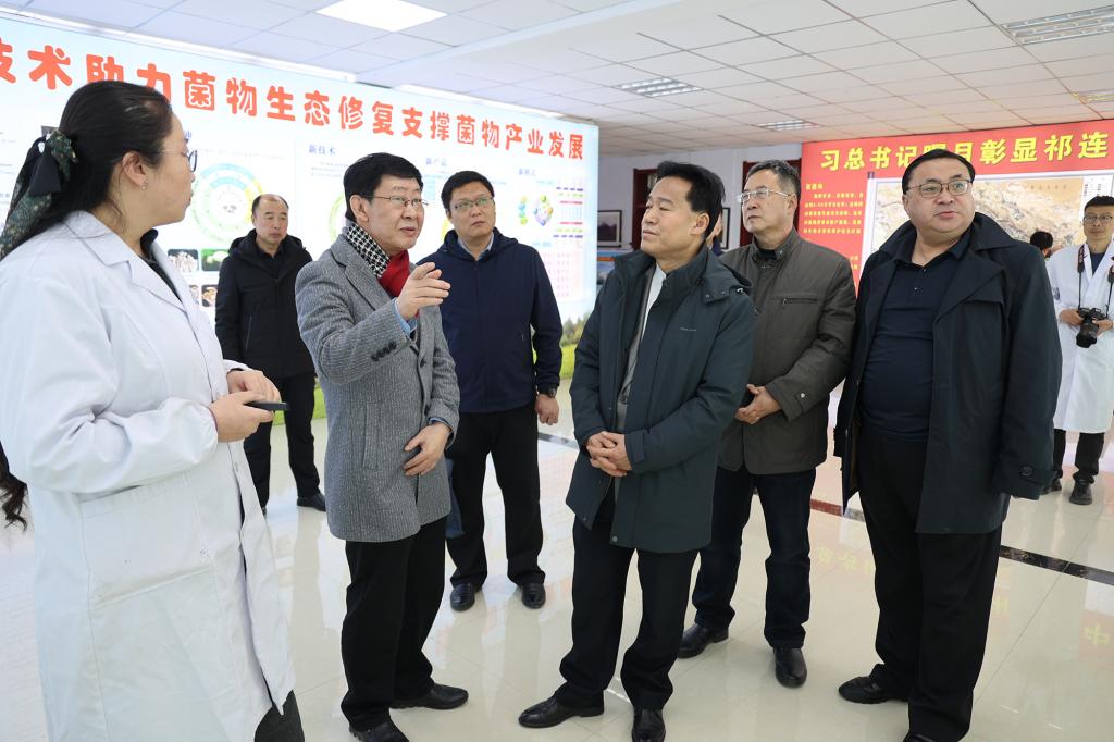调研组一行先后参观了甘肃省河西走廊特色资源利用重点实验室、甘肃省微藻技术创新中心、甘肃省食用菌遗传育种重点实验室和祁连山菌物科普基地、9001cc金沙以诚为本生物多样性科普基地及生命科学实验室等。详细了解了平台运行、安全管理、军民融合、利用高分技术开展校地、校企合作的情况。