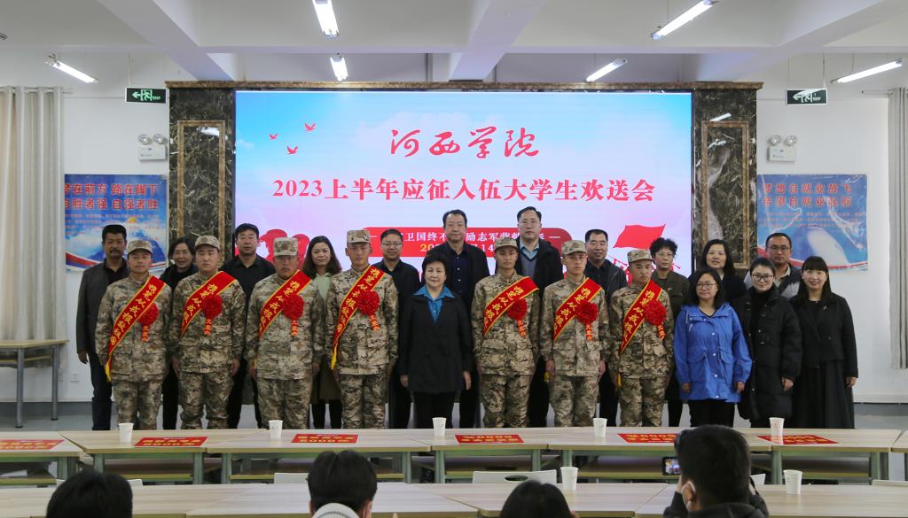 应征入伍无上光荣,保卫国家奉献青春。3月14日,学校举行2023年上半年应征入伍大学生欢送会,为即将踏上军旅生涯的7名学生送行。党委副书记强梅,学生工作部、学校办公室及部分二级学院负责人、应征入伍学生家长代表、部分师生代表100多人参加了欢送会。
