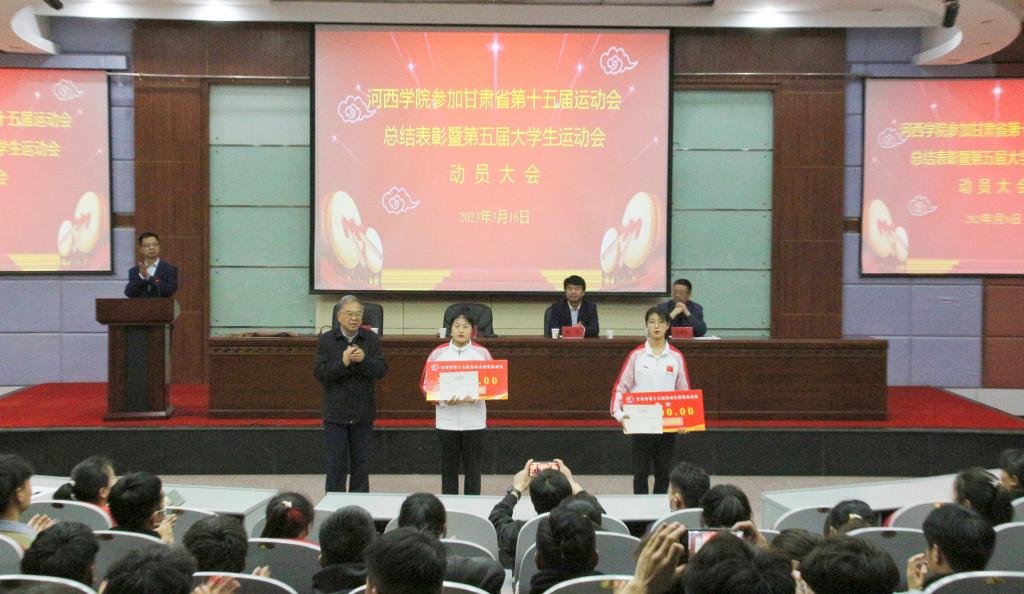 3月16日下午,学校体委召开参加甘肃省第十五届运动会总结表彰暨备战甘肃省第五届大运会动员大会。党委常委、副校长张勇出席会议,教务处负责人、体育学院教职工、省运会参赛运动员、大运会备战运动员及教练员、体育学院学生代表200余人参加大会。