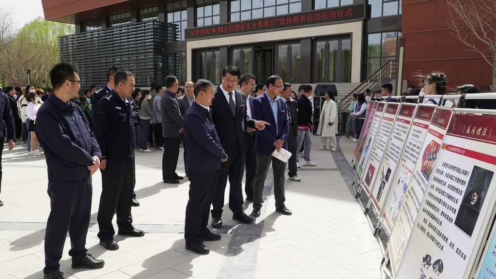 4月15日上午,“4·15”全民国家安全教育日宣传活动启动仪式在河西讲堂广场举行。党委常委、纪委书记、监察专员殷大斌出席并讲话。张掖市公安局国保支队、甘州分局国保大队、甘州区西街派出所、学校相关部门和学院负责人及学生代表500余名人参加了活动。
