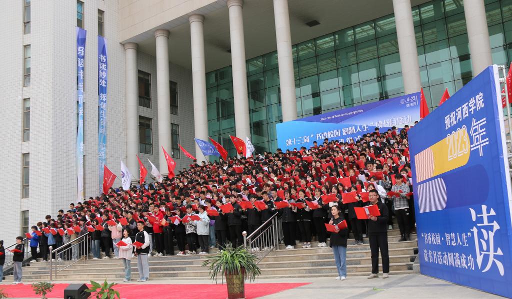 为迎接第28个“世界读书日”的到来,4月21日下午,学校第十三届“书香校园 智慧人生”读书月活动启动仪式在祁连广场举行。党委副书记、校长周勇,党委宣传部、教务处、学工部、科技处、团委、图书馆等部门负责人和2000余名师生代表参加了启动仪式。