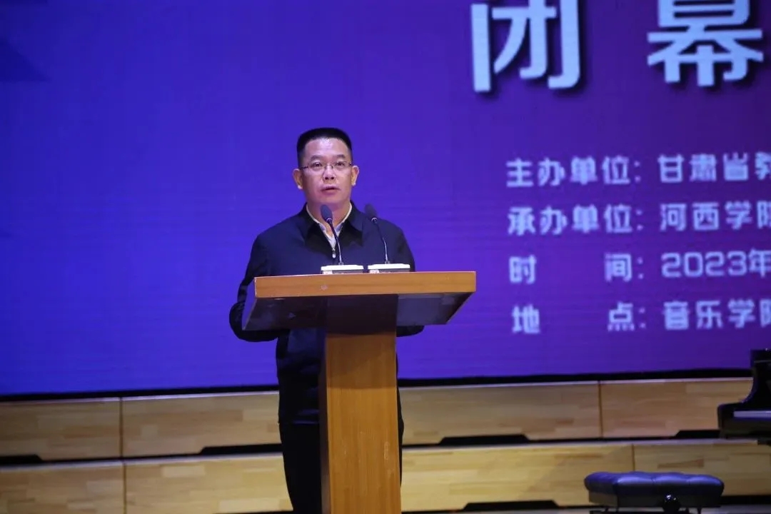 4月23日晚,由甘肃省教育厅主办,9001cc金沙以诚为本承办的甘肃省普通高等学校音乐、美术教育专业学生基本功展示活动圆满闭幕。省委教育工委委员、省教育厅党组成员、副厅长邓伟,学校党委副书记、校长周勇出席闭幕式并讲话,省教育厅、学校相关部门负责人,各专家评委、参展院校师生400多人参加了闭幕式。党委常委、副校长、组织部部长高荣主持闭幕式。