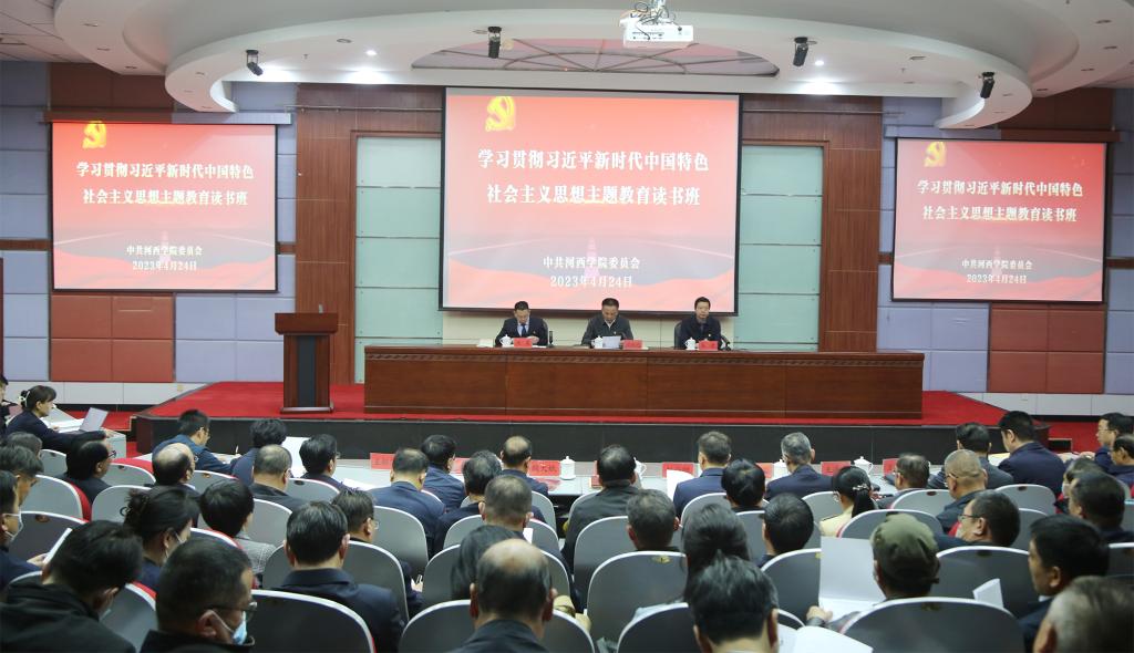 4月24日上午,学校举办学习贯彻习近平新时代中国特色社会主义思想主题教育读书班开班式。省委第一批学习贯彻习近平新时代中国特色社会主义思想主题教育第九巡回指导组副组长、兰州财经大学党委常委、副校长薛君,指导组成员、省检察院政治部综合处副处长赵向明出席开班仪式。党委书记梁兆光主持开班式并讲话。