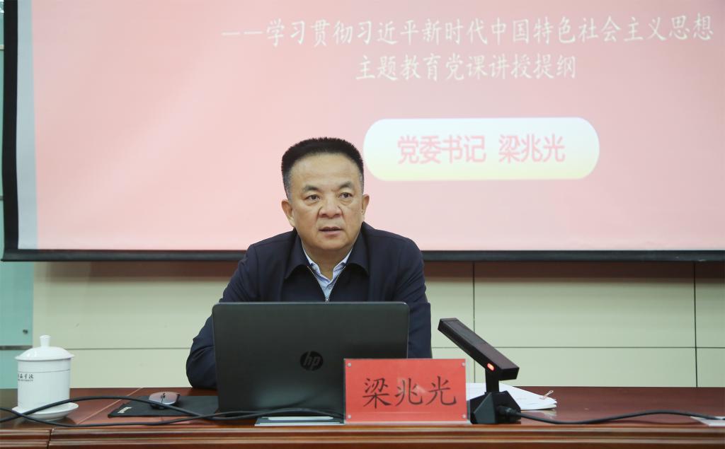 5月5日上午,在全校上下深入开展学习贯彻习近平新时代中国特色社会主义思想主题教育之际,党委书记梁兆光以《纵深推进全面从严治党 不断提高政治能力 切实为学校高质量发展提供坚强政治保障》为题,为主题教育读书班学员讲授专题党课。