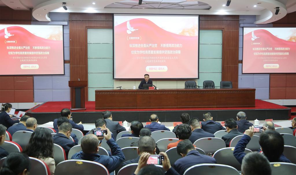梁兆光结合近期学习、研讨和调研情况,从深刻领会全面从严治党部署要求,始终筑牢政治忠诚;准确把握政治建设核心要义,不断提高政治能力;着力增强行动自觉,全面加快学校高质量发展三个方面进行了深刻阐释,激励大家学思想、强党性、重实践、建新功,坚持学思用贯通、知信行统一,以饱满的精神状态和求真务实的工作作风抓好各项任务落实,努力在以学铸魂、以学增智、以学正风、以学促干方面取得实实在在的效果。