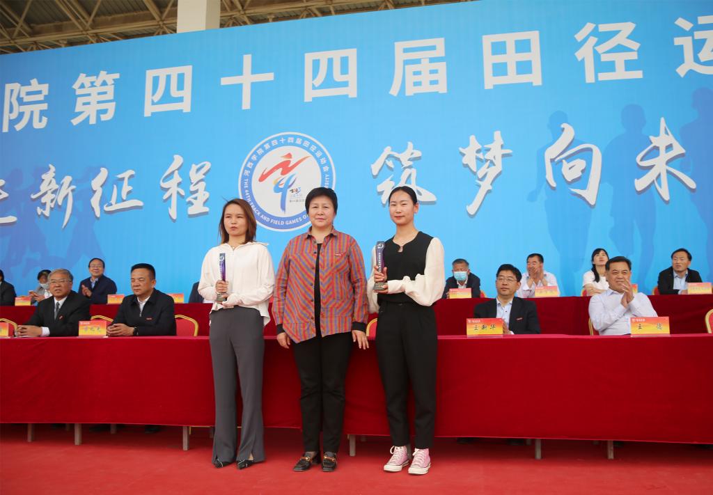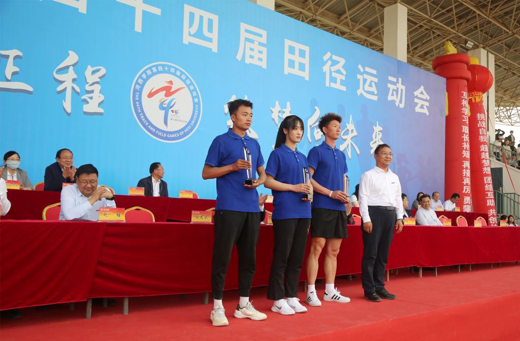 闭幕式上,校运会总裁判长宣布比赛成绩,党委常委、教务处处长、校体委副主任赵柱宣布“团体总分奖”“优秀组织奖”名单,体育学院负责人宣布“优秀志愿者团队”“优秀裁判员”“优秀志愿者”获奖名单,学校领导梁兆光、强梅、张勇、殷大斌为获奖代表队颁奖。