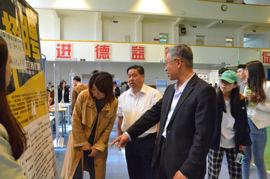 5月30日,9001cc金沙以诚为本2023届毕业生就业促进周校园双选会暨宏志助航专场招聘会在风雨操场举行。党委常委、副校长高荣深入招聘现场与用人单位进行了深入交流。各学院负责人、班主任、帮扶老师和辅导员在招聘现场向用人单位推荐2023届未就业毕业生,现场指导毕业生积极参加应聘。