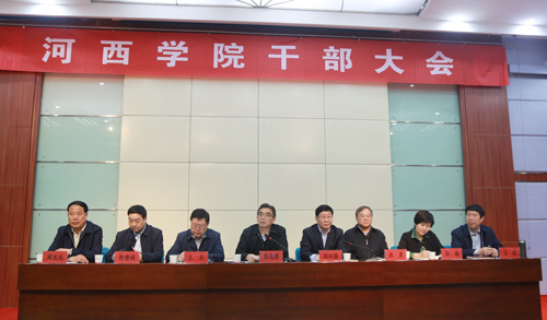 党委书记黎志强作总结讲话。他指出,2019年学校工作要按照强特色、增亮点、促提升、保落实的总体思路,全面提升办学实力和办学水平。强特色,就是要始终坚持河西特色,做河西文章,不仅要在科研上出特色,还要在文化建设、人才培养、管理机制、课程建设、人才培养模式等方面出特色。增亮点,要进一步推进工作创新,着力打造“一院一品”、“一院多品”,着力深化“亮点”工程。促提升,干部教师要积极适应学校发展和新时代要求,着力提升管理能力、服务能力、教学能力,学生要提升学习能力,共同促进学校办学水平的提升。保落实,要解决不落实、慢落实、机械落实的问题,把确定的工作任务一件一件抓好落实,围绕学校中心工作推进落实。