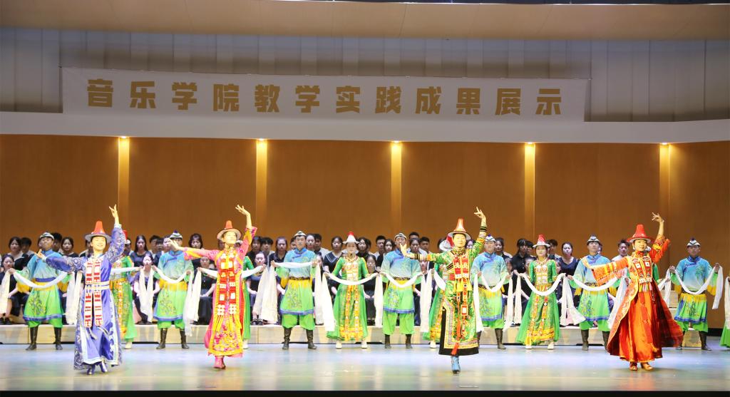 调研组一行在音乐厅观看了我校音乐学院教学实践成果展示,先后欣赏了原创歌舞剧《裕固风华》片段,合唱《八骏赞》和管乐合奏《走向复兴》。