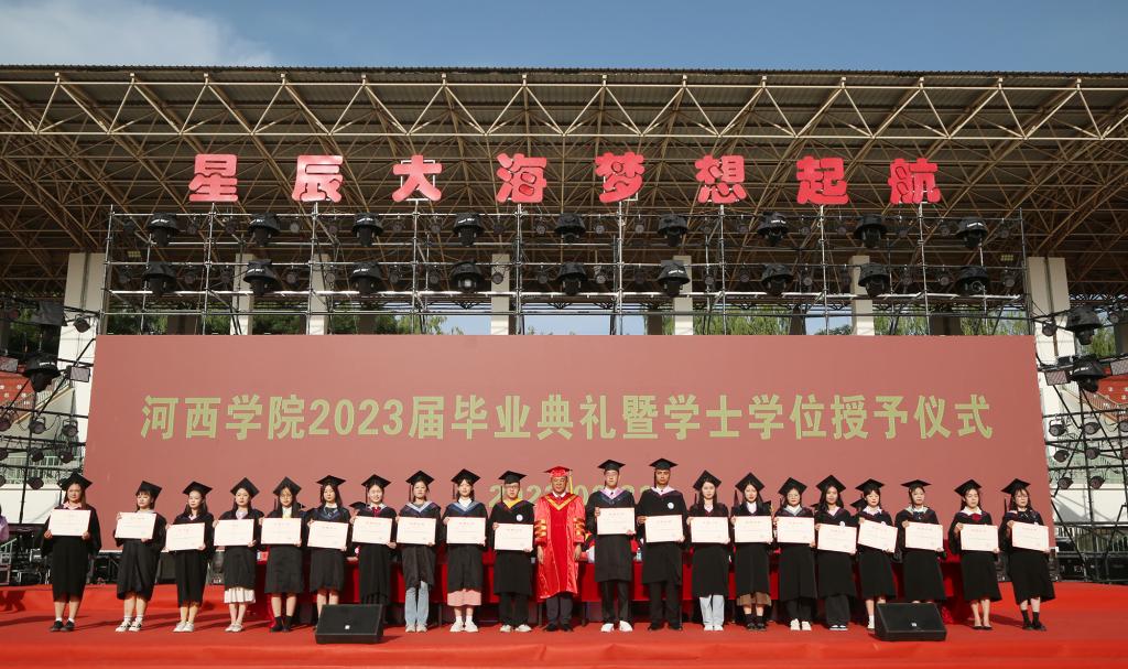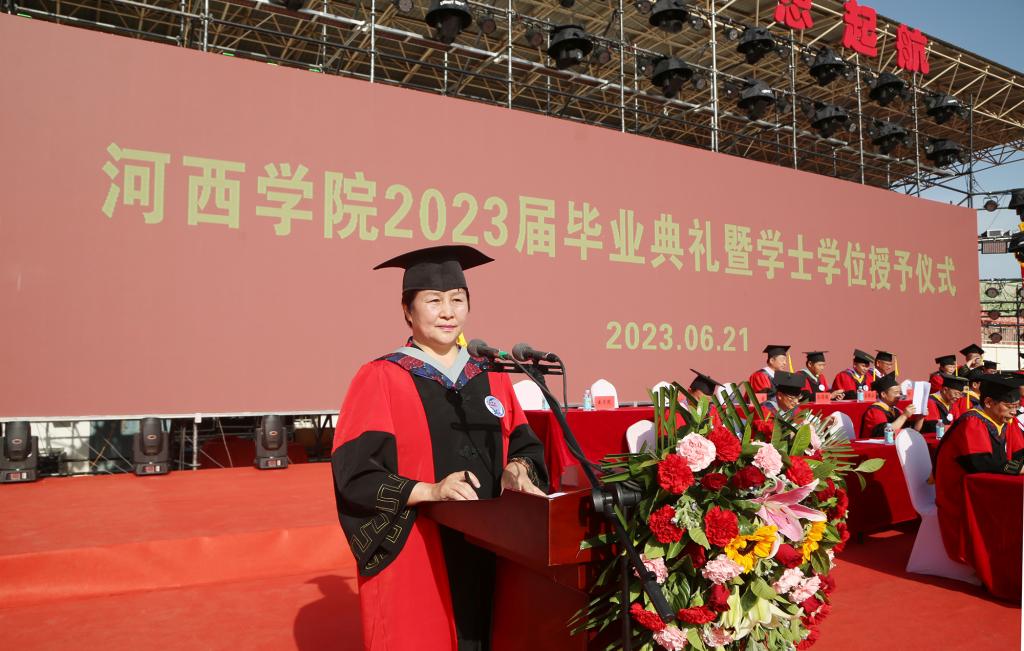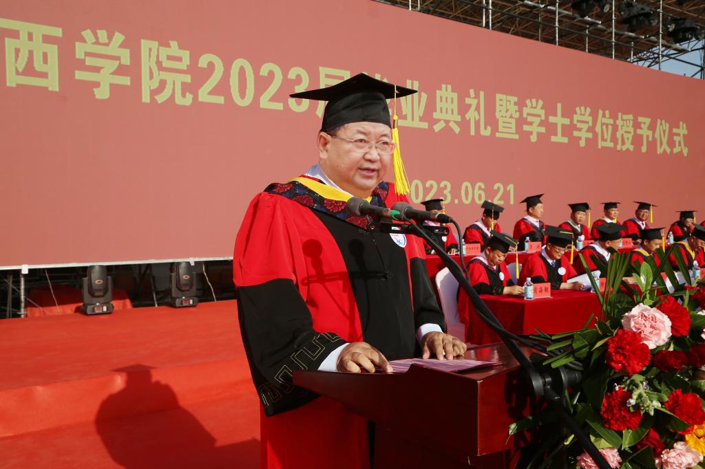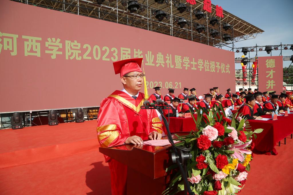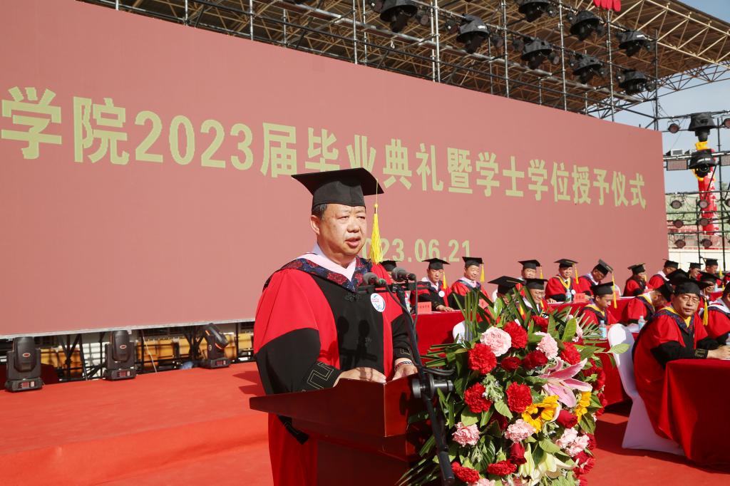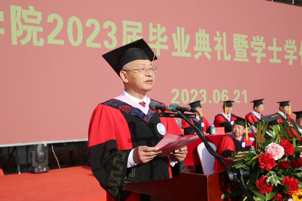 党委常委、副校长、组织部部长高荣宣读准予毕业和授予学士学位的2023届毕业生名单;党委常委、副校长、教务处处长赵柱宣读了先进集体和先进个人名单。