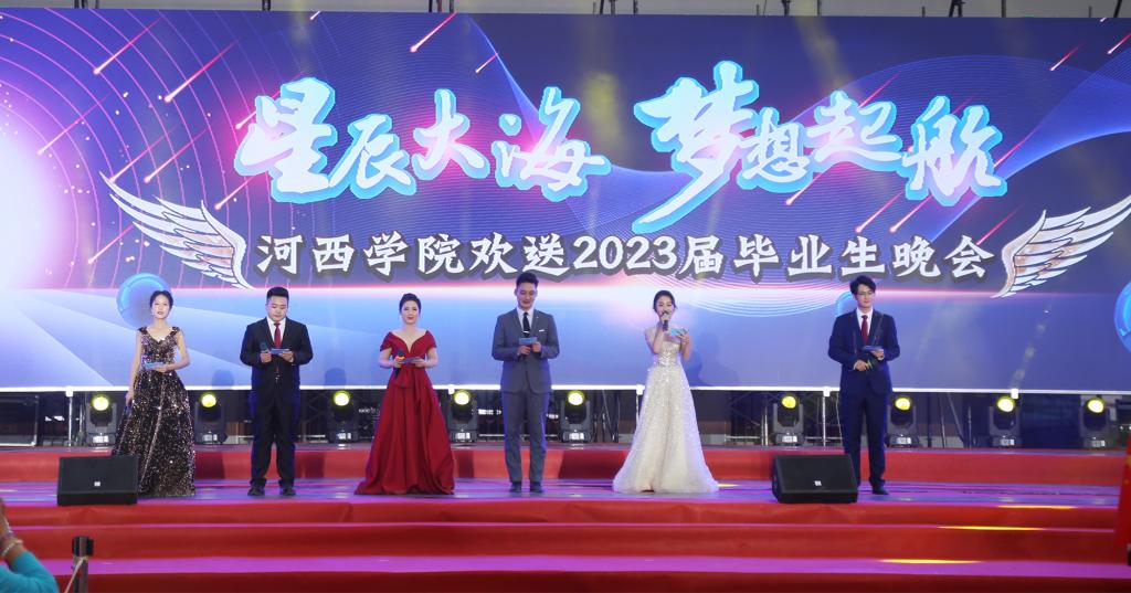 晚会在开场舞《盛世中华》中拉开序幕。歌曲联唱《致青春》、青年集体舞《舞动青春向未来》融合青春气息,展现学子风采;手语舞蹈《春暖花开》、舞蹈《最美青春绽放边疆》、歌伴舞《戎光》号召即将奔赴祖国各地的河西学子秉承学校精神,绽放最美青春,勇担时代使命;歌曲《奉献》、诗朗诵《征程再启,未来可期》表达了2023届毕业生对学校、老师、父母的感恩之情;35名教师代表演唱《祖国不会忘记》,用歌声表达浓烈的爱校爱生情怀,歌颂在学校发展中默默奉献的奉献者;歌曲《星辰大海》、民族舞《石榴花开一家亲》、歌曲《我和我的祖国》抒发了河西学子浓浓的爱校爱国情怀。