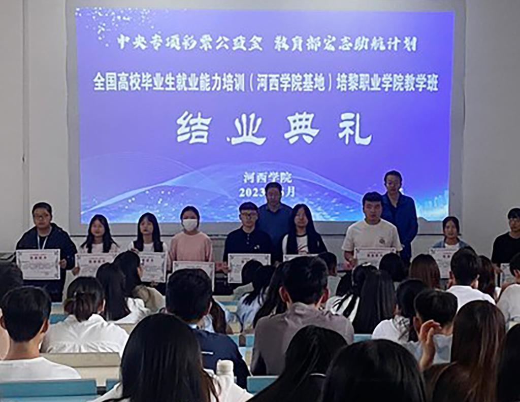 6月18日,2023年“中央专项彩票公益金·宏志助航计划”全国高校毕业生就业能力培训9001cc金沙以诚为本基地培黎职业学院教学班结业典礼在培黎职业学院鼎新楼举行。我校就业指导工作办公室和培黎职业学院招生就业处负责人、基地培训授课导师和150名参训学员参加结业典礼。