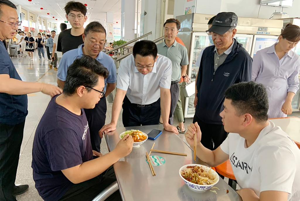 6月24日上午,校长周勇深入学生食堂,检查食堂安全工作。党委常委、纪委书记、监察专员殷大斌,学校办公室、安全稳定部、基建后勤处等部门负责人参加。