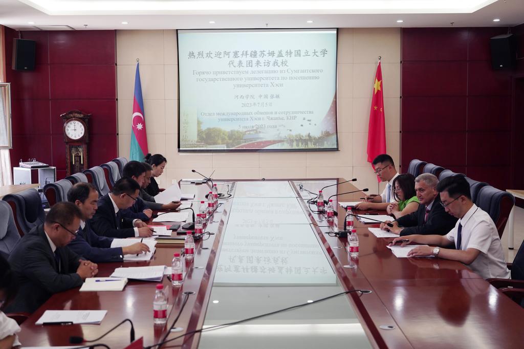 7月5日,阿塞拜疆苏姆盖特国立大学副校长加法尔• 阿塔耶夫,国际处处长萨达尕特•法图拉耶娃,校长顾问宋光潇在甘肃省联合国教科文组织协会会长杜永军的陪同下访问我校。学校党委副书记、校长周勇在河西讲堂会见代表团,并就深化两校合作举行座谈会。会议由国际交流合作处负责人主持,相关部门和二级学院负责人参加。
