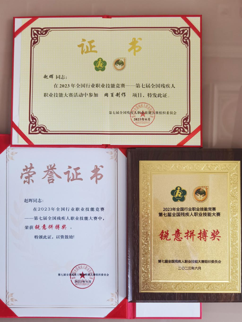 全国残疾人职业技能大赛是国家级一类职业技能竞赛,每四年举办一次。本届大赛以“新时代、新技能、新梦想”为主题,共设信息通信技术、工艺美术、手工业、工业及先进制造业、生活服务等五大类28个竞赛项目。来自全国32个省、自治区、直辖市及新疆生产建设兵团950名参赛选手同台竞技,进行了为期三天的比赛。经过层层选拔,赵晖以全省残疾人职业技能竞赛网页制作项目第三名的优异成绩,作为我省选派的28名参赛选手之一,参加了本届比赛,展示了我校职工良好的职业技能素养和自强不息、顽强拼搏的精神风貌。