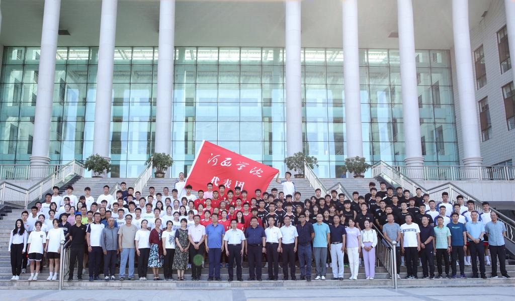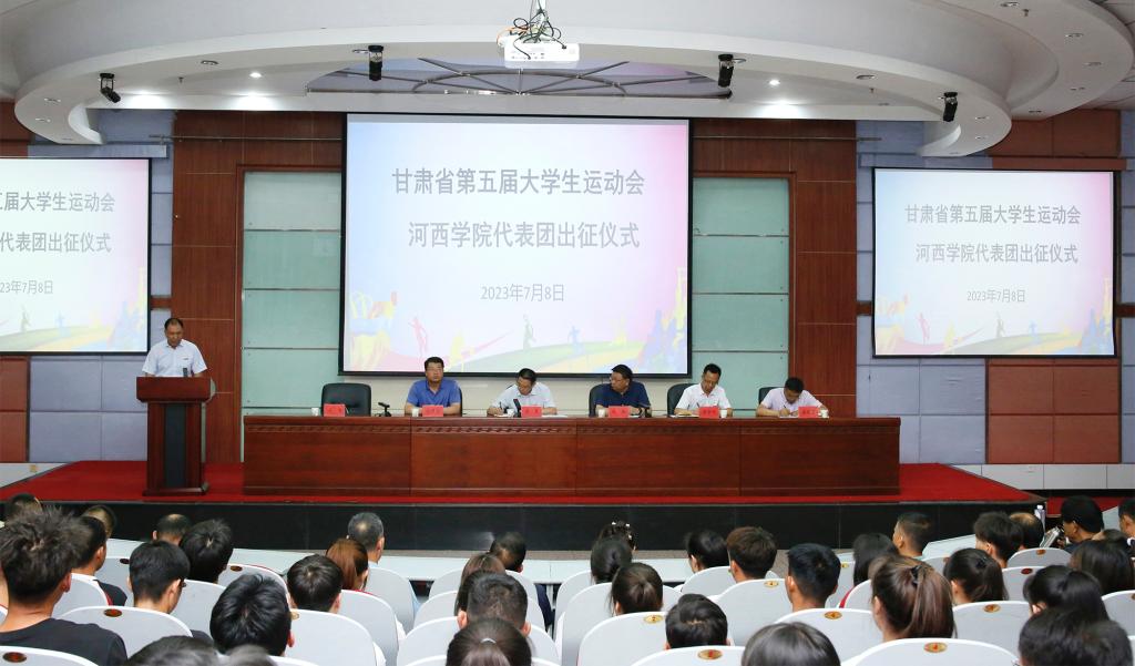 7月8日,学校举行甘肃省第五届大学生运动会出征仪式。校党委副书记、校长周勇,党委常委、副校长赵柱,校体委、办公室、体育学院负责人及各参赛项目代表队全体领队、教练员和运动员共170多人参加仪式。