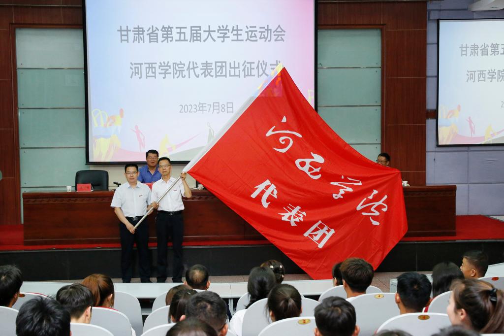周勇为参加甘肃省第五届大学生运动会9001cc金沙以诚为本代表团授旗并作动员讲话。他指出,四年一届的全省大学生运动会,是各高校展示体育竞技水平和教育教学质量的重要舞台,学校高度重视本届运动会的各项工作,多次研究部署参赛,运动员、教练员认真备战,今年学校决定派出181人的代表团,参加所有9个大项的角逐。全体运动员、教练员要顽强拼搏、超越自我,弘扬“追求卓越,自强不息”的学校精神,努力践行“更快、更高、更强——更团结”的奥林匹克格言,勇于竞争,敢于拼搏,力争取得运动成绩新突破;要文明参赛、展现风采,保持良好的赛风赛纪,尊重对手、尊重裁判、遵守规则,赛出形象、赛出风格,充分展现我校师生良好的道德情操和文明风范,努力实现运动成绩和精神文明的双丰收;要守牢底线、确保安全,科学比赛,做好个人安全防护,切实加强交通、饮食等风险管控,顺利完成各项赛事。