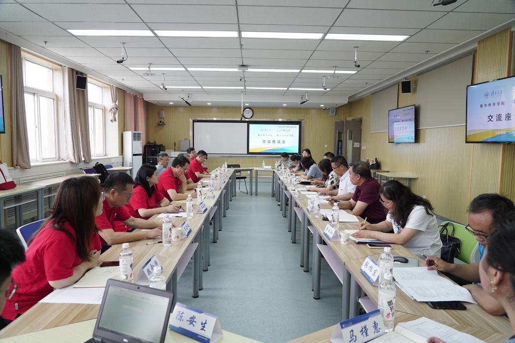 座谈会上,数学与统计学院党政负责人介绍了学院主题教育、党的建设、思政育人、学科专业、师资队伍、人才培养、专业认证、教学科研等基本情况、育人特色和学院发展的瓶颈。王光临书记从学科建设、师资队伍、科学研究、人才培养、党建领航等方面介绍了复旦大学数学学科在向世界一流学科迈进过程中取得的育人成果,并代表复旦大学数学科学学院向数学与统计学院赠送了《苏步青业余诗词抄》等书籍。双方围绕硕士研究生培养、师资队伍培养进行了深入探讨。复旦大学数学科学学院表示今后将在青年教师培养、科研项目申报、科研团队建设等方面加强合作和支援,充分利用课题项目参与,提升青年教师教学科研能力。