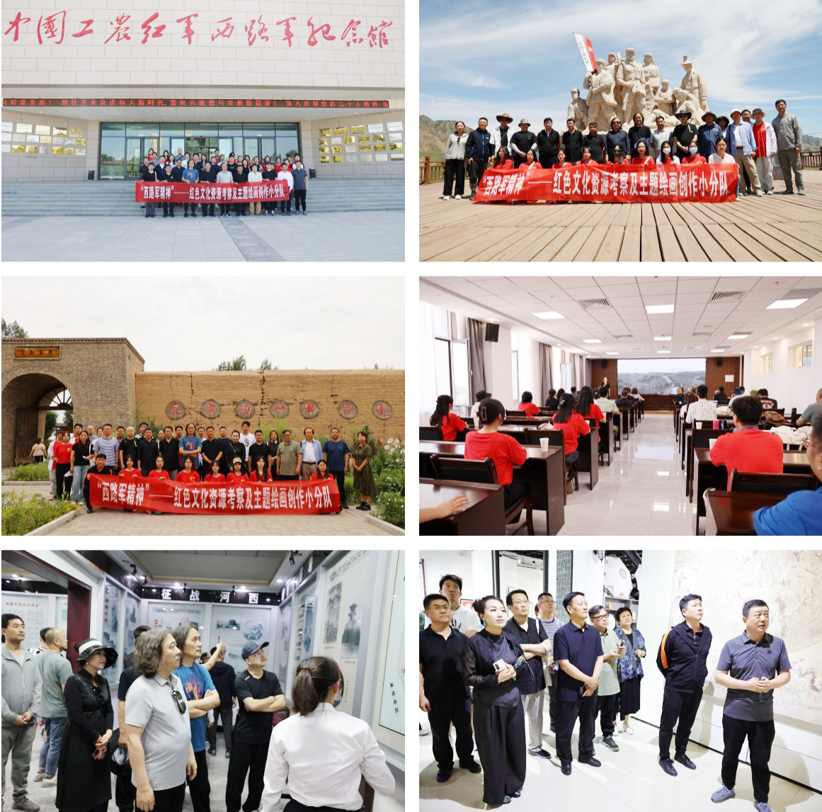 与会专家学者赴高台、肃南、临泽、甘州区等地,对中国工农红军西路军纪念馆、红西路军石窝会议纪念馆、梨园口战斗遗址、西路军马场滩战斗遗址等14处纪念馆、战斗遗址进行了实地考察采风及调研,就红色主题艺术创作等相关问题进行深入交流。