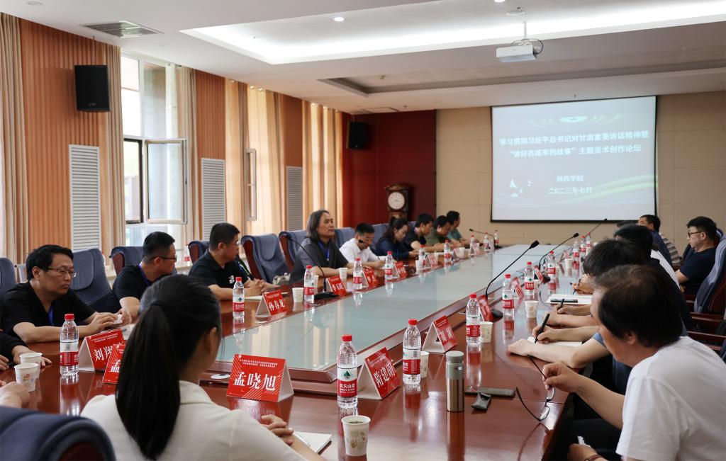 专题研讨阶段,与会专家学者围绕学习习近平总书记关于文艺创作的重要论述及党的文艺方针、习近平总书记对甘肃重要讲话精神、革命历史主题创作方法、团队建设等开展研讨交流。与会专家学者一致认为,以绘画创作实践作为切入点,“让历史说话、用史实发言”,有效带动革命题材的创作研究,彰显“讲好西路军的故事”当代价值与意义,是两所学校在教育部师范教育协同提质计划下的担当与责任,更是广大艺术工作者责无旁贷的神圣使命。