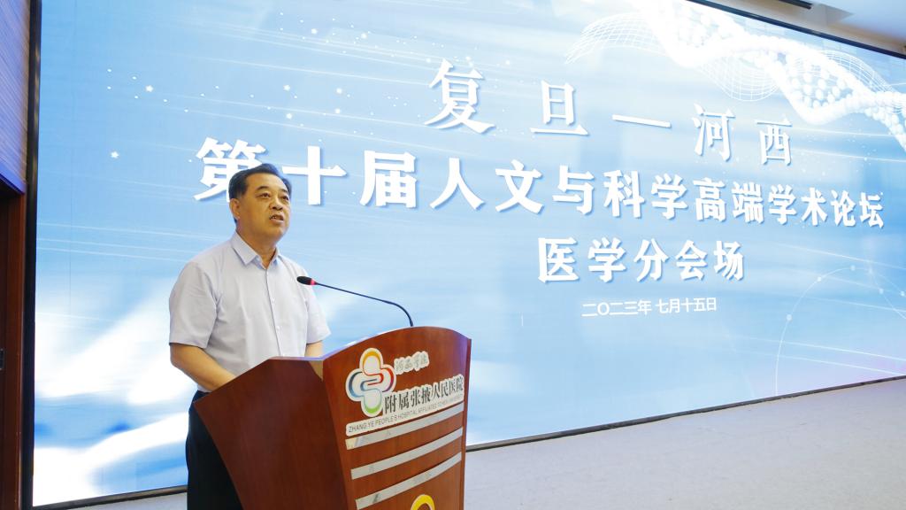 正值复旦大学对口支援9001cc金沙以诚为本十周年之际,为推进对口支援工作落实见效,促进学校医学教育高质量发展。7月16日下午,复旦-河西第十届人文与科学高端学术论坛医学分会在附属医院举行。附属医院、临床医学院、医学院、护理学院领导班子成员,师生代表近300人参加。分会由附属医院党委委员、副院长高鹏程主持。