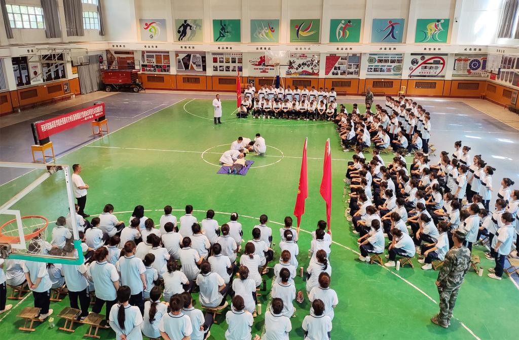 学习战地救护知识技能、了解常用医学知识是大学生军训的重要内容,也是学校普及应急救护知识、构建平安校园的必要内容。军训期间,学校在校本部风雨操场面和医学校区向全体2022级学生,以连为单位开展战地医疗救护培训。