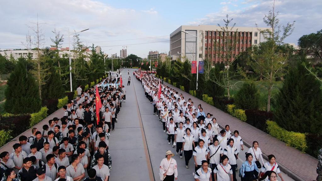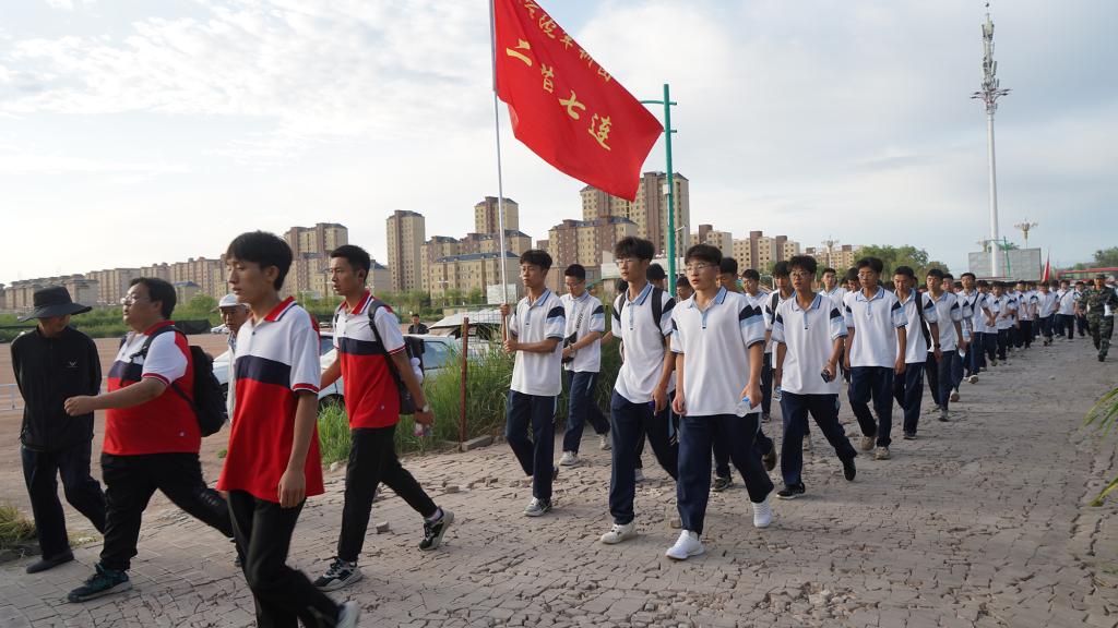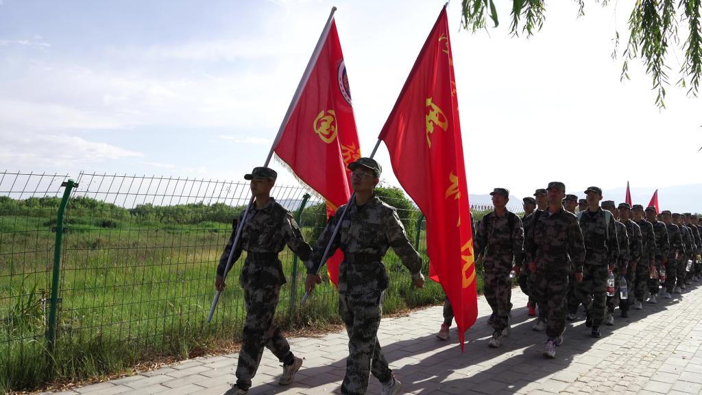 按照军训团统一部署,凌晨7:00,4800多名参训学生在军训教官和老师的带领下,从学校东门出发,徒步穿越湿地进行拉练。行军队伍分四路纵队行进,国旗班作为尖刀班行进在军训团最前面,军训团各连依次跟进。行军全程配备有巡逻车、安保车等保障车辆并进行流动巡医保障。途经交通路口时,派出安全调整哨,切实保障军训团全程安全。为确保拉练取得成效,军训团工作人员科学谋划,实地勘察拉练路线,结合天气、地形、安全等各方面因素,制订详细的拉练方案,精心描绘行军路线图,明确工作任务及分工,开展了路线勘察、安全预警、路线警戒、医疗保障等工作,为军事拉练活动提供了有效保障。军训教官认真负责、悉心指导,参训师生发扬部队“有灵魂、有本事、有血性、有品德”四有精神,互相帮助、相互协作,克服困难,圆满完成了拉练任务。在行军拉练中,同学们直面湿地,亲近自然,深刻感受到“彩虹张掖”的湿地之美。