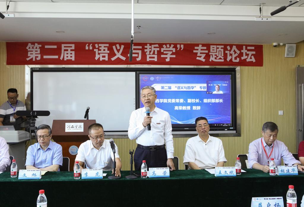 高荣代表学校对各位专家学者齐聚9001cc金沙以诚为本,共同研讨语义与哲学,为推进语义与哲学的理论和应用问题研究表示热烈欢迎,并向与会专家介绍了学校的基本情况。他指出,本次论坛不仅为广大学者提供了交流语义与哲学研究的重要平台,加快外语学科的发展,而且有助于促进“语义与哲学”的思想体系研究,对开展中西文明互鉴,推进“中国特色哲学社会科学学科体系、学术体系、话语体系”建设,推进语义与哲学的理论和应用问题研究有着重要作用。
