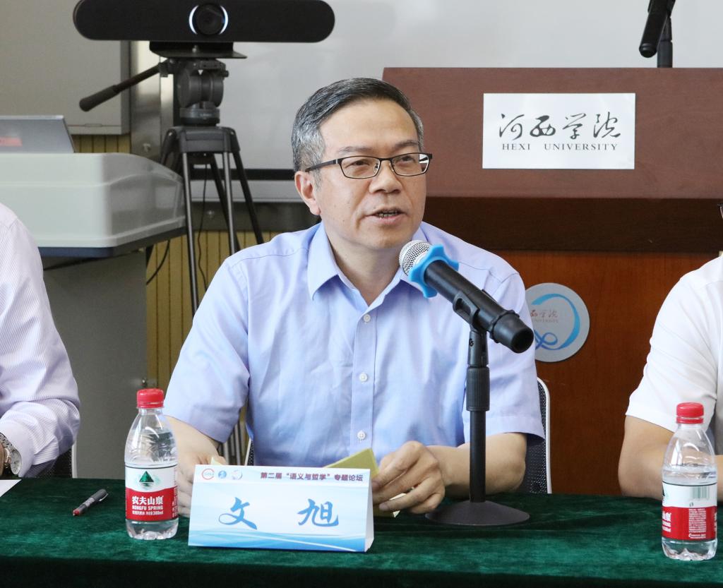 中国英汉语比较研究会认知翻译学专业委员会会长、西南大学外国语学院院长文旭教授代表学会致辞,对论坛的召开表示祝贺,并指出此次专题论坛将将对我国语义与哲学的研究起到十分重要的推动作用,希望以本次论坛为契机,展开相关问题的深入讨论与研究。