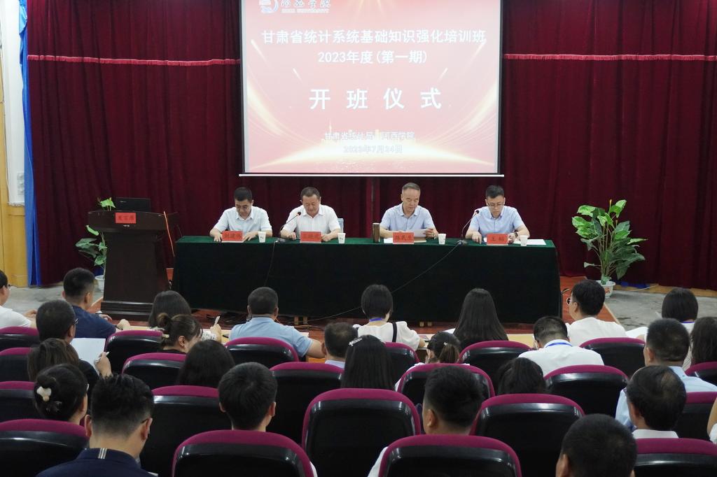 7月24日,学校承担的2023年度甘肃省统计系统基础知识强化培训班第一期开班。甘肃省统计局二级巡视员路民生,甘肃省统计局培训中心副主任王韬,张掖市统计局党组成员 、副局长刘建伟,学校继续教育学院负责人,培训班主任和培训学员共110人参加了开班仪式。