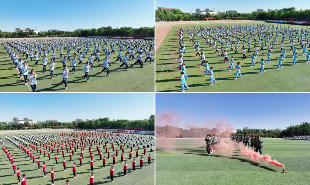 军训会操在雄壮的国歌声中拉开帷幕。军训团以连为单位,按建制序列依次走过主席台进行分列式成果展示。他们用坚定的步伐、整齐的队列、标准的动作、嘹亮的口号,赢得了台上台下阵阵掌声。在大会的科目汇报环节中,男子队列方阵、女子队列方阵、应急棍、女子军体拳、擒敌拳、匕首操、战术演练依次进行,同学们整齐的步伐、响亮的声音、笔挺的军姿、利落的动作,充分展现了河西学子的青春风采和爱国情怀。
