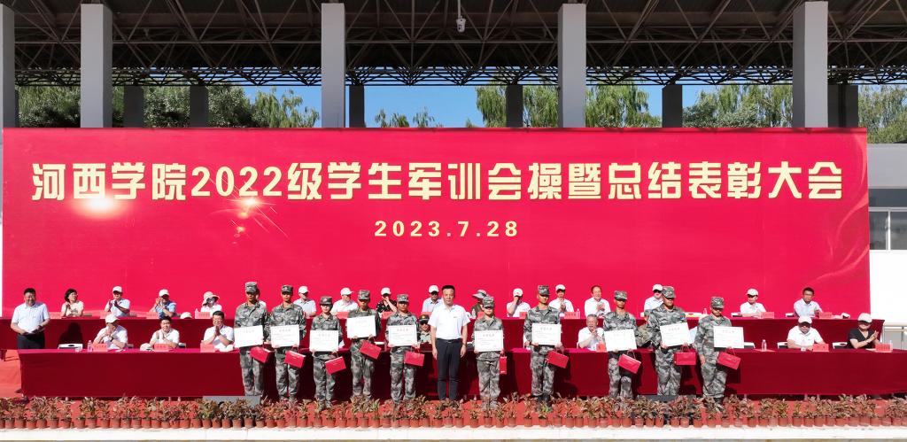 2022级学生军训自7月15日至28日结束,历时14天。4900名同学在学校的精心组织和教官的严格要求、科学施训下,克服了酷暑高温、时间短、任务重等困难,在完成了军事理论和军事技能科目规定训练同时,还参加了“国防教育报告”“歌声中的党史”“爱我国防”演讲比赛、“退役不褪色 青春勇担当”退役军人故事分享会、入伍政策解读、战地医疗救护培训、应急疏散及灭火演练等紧扣军训内容且富有特色和教育意义的活动。此次军训将思政教育、美育教育、体育教育、劳动教育与军事训练相结合,进一步落实了“三全育人”和“五育并举”的高校思政工作目标。河西学子将秉承“明德尚美 求真笃行”的校训,以饱满的热情自觉投身实现中华民族伟大复兴的宏伟事业,让青春的脉搏与新时代同频共振,用实际行动践行“请党放心,强国有我”的铮铮誓言!