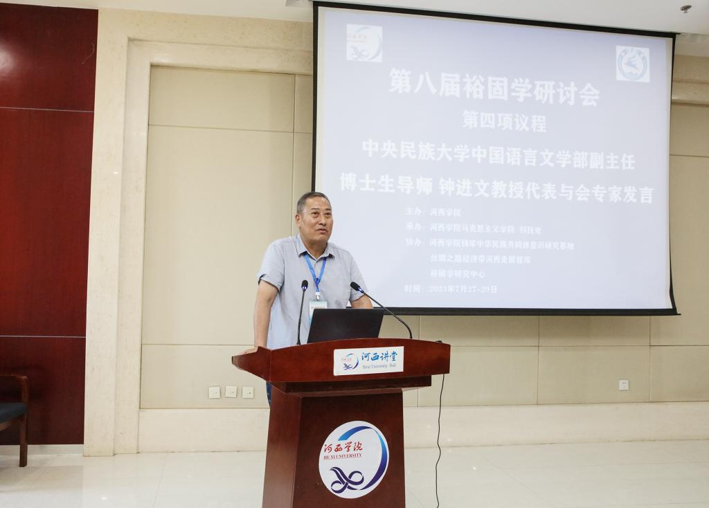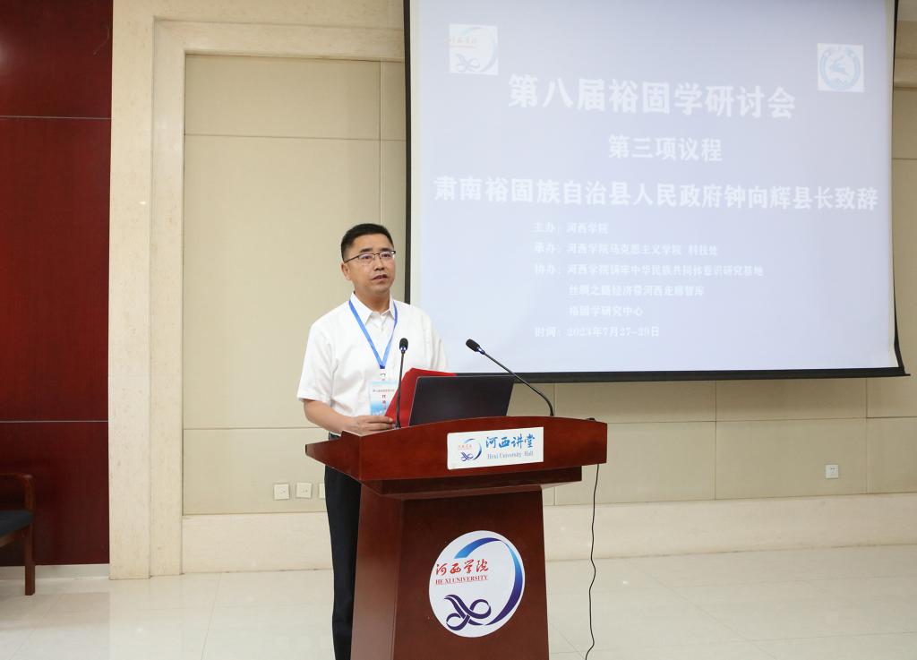 开幕式上,校党委副书记、校长周勇教授和肃南裕固自治县县委副书记、县政府县长钟向辉分别致辞,中央民族大学中国语言文学部副主任、博士生导师钟进文教授代表与会专家发言。
