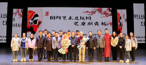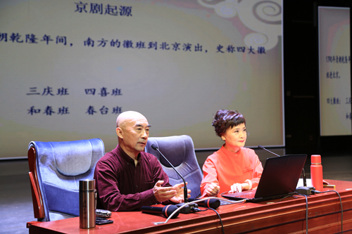 马少敏老师和姜肃泉老师就京剧的形成、发展、唱腔、唱法等方面详细的作了讲解;把《苏三起解》(节选)、《智取威虎山》(节选)等经典片段进行示范,与现场观众一起互动学习;把京剧的部分服装和道具为大家做了展示。最后两位老师为大家献上了传统京剧《四郎探母》之《坐宫》选段、现代京剧《白毛女》选段,在《梨花颂》中结束了本场活动。