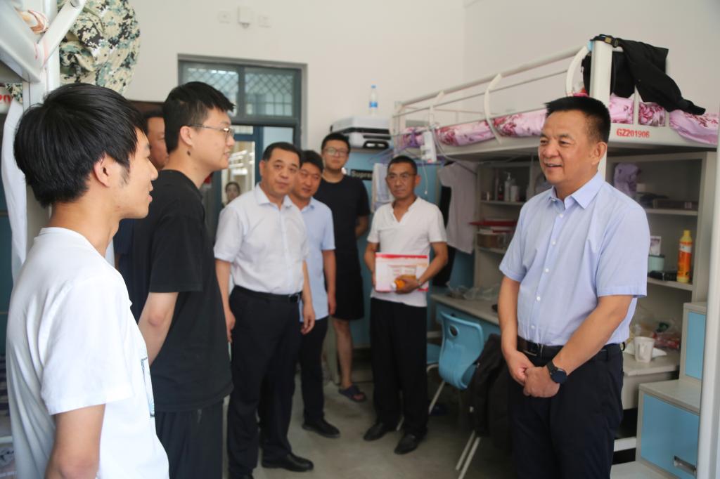 梁兆光一行深入学生宿舍,与暑假留校的同学们亲切交谈,仔细询问假期学习、生活等方面的情况,征求同学们对学校工作的意见和建议,勉励同学们珍惜大学时光,刻苦认真学习,努力成为国家栋梁之才。