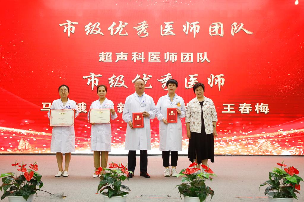 党委副书记强梅为荣获市级优秀医师及团队颁发荣誉证书