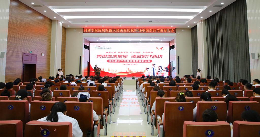 为充分发挥先进典型示范引领作用,激励全院医务人员继续弘扬“敬佑生命、救死扶伤、甘于奉献、大爱无疆”的崇高职业精神,8月18日下午,附属医院举办了以“勇担健康使命 铸就时代新功”为主题的庆祝8.19中国医师节表彰大会。校党委副书记、校长周勇,党委副书记强梅,张掖市卫健委副主任李明出席活动,附属医院党政领导班子,省级、市级、院级优秀医师和优秀医师团队代表及各科室医师代表齐聚一堂,共同庆祝他们的节日。大会由党委常委、附属医院党委书记王德主持。