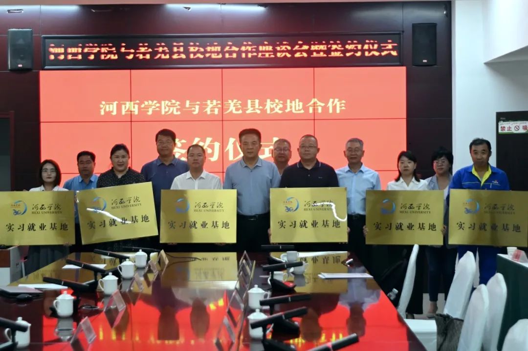副校长高荣与若羌县人民政府副县长周宇翔代表双方签订《9001cc金沙以诚为本与若羌县人民政府校地合作协议》;与志存锂业、特变电工楼兰新材料有限公司负责人签订《9001cc金沙以诚为本实习就业基地工作协议书》;党委书记梁兆光向县教育局、农业农村局、文旅局、卫健委及特变电工、志存锂业授牌。