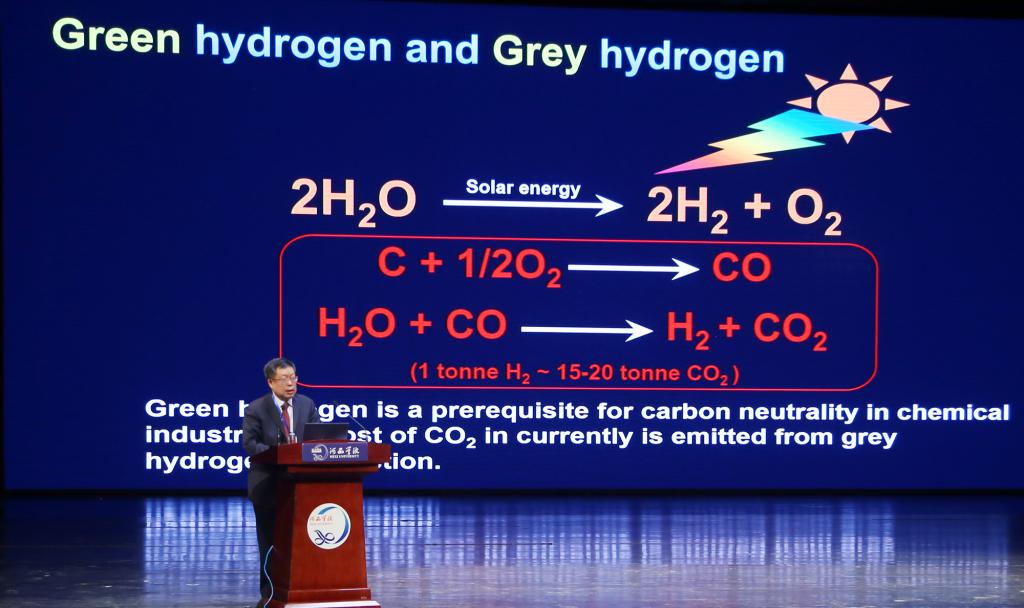 李灿院士从战略和技术两个层面讲述了绿氢在国家双碳战略目标中的地位,绿氢在能源、化学化工方面的重要作用,阐述了四个方面的内容:一是碳中和、绿氢和液体阳光的关系,二是液态阳光的合成过程,包括光伏发电电解水得到绿氢,绿氢与CO2合成甲醇中ZnO-ZrO2系列催化剂的开发,CO2的活化、H2的活化等重点环节上的突破性研究,三是从实验室到千吨规模的CO2加氢机理的认识,以及产业化发展的开创性工作,四是CO2与绿氢合成烯烃芳烃等产物及与生物转化耦合合成淀粉等重要产品。