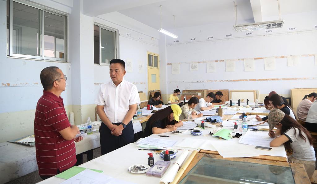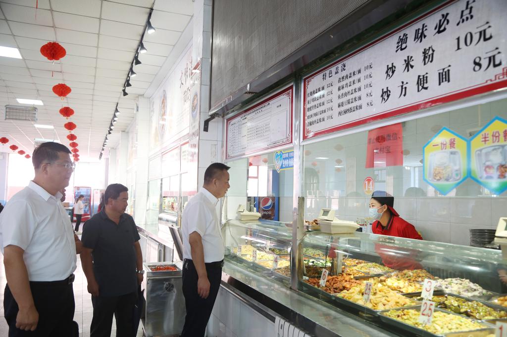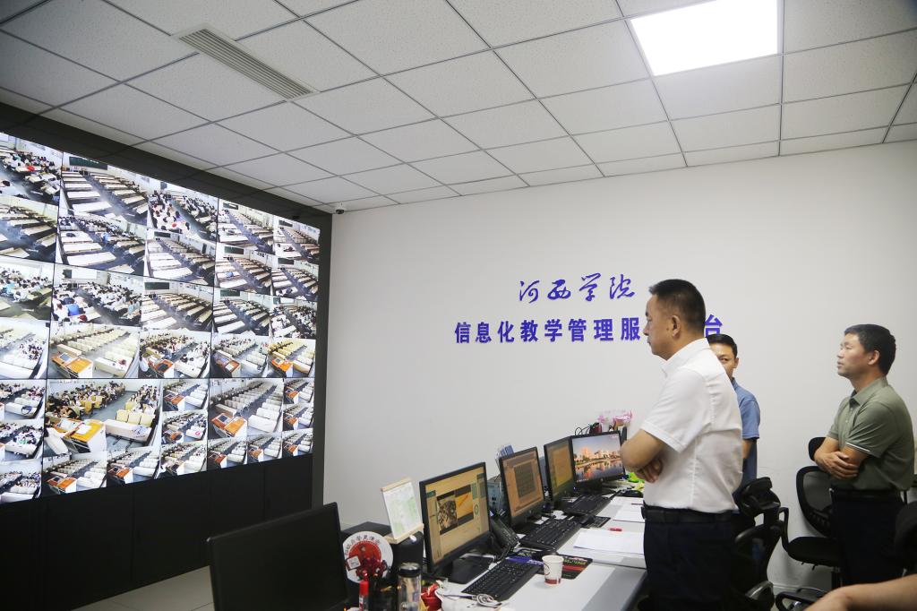 梁兆光一行先后检查了8号教学楼、9号教学楼、塑胶操场、美术学院、学生食堂,深入了解教师、学生按时到课情况,教学楼卫生状况、校园环境、教学楼值班和餐食供应情况,与学生亲切交流,询问饭菜价格质量;随机听取了《马克思主义基本原理》课程,在9号教学楼监控室查看了各个校区、各教学楼教师、学生上课情况。