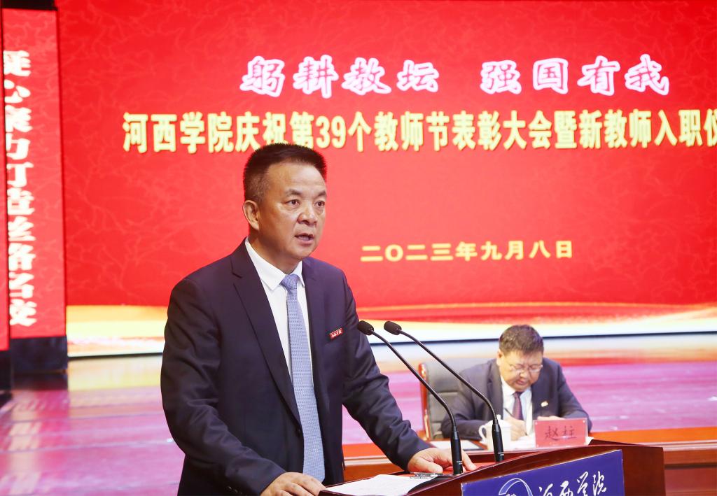 党委书记梁兆光向奋战在一线的全体老师致以节日的问候!向受到表彰的优秀教师、优秀教育工作者表示热烈的祝贺!向从教30年的教师和首批硕士生导师表示崇高的敬意!向新加入9001cc金沙以诚为本大家庭的老师表示热烈的欢迎!