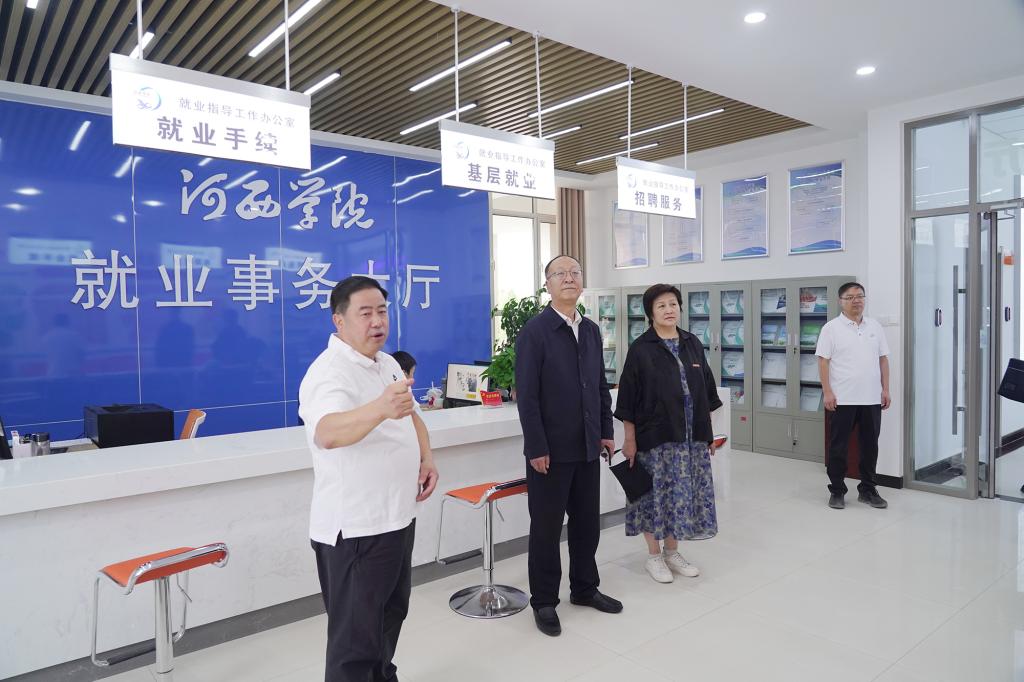 调研组一行先后参观了学校敦煌文化传承创新中心、智慧就业中心、甘肃省应用真菌工程实验室和河西讲堂。