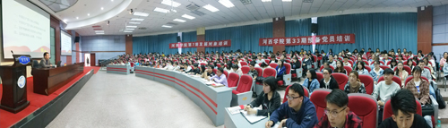 4月16日,校党委副书记王兵以《深刻把握中国共产党人的初心和使命 切实践行新时代党的建设总要求》为题,在图书馆二楼报告厅为第7期发展对象与第33期预备党员讲授党课。280名培训学员听课。