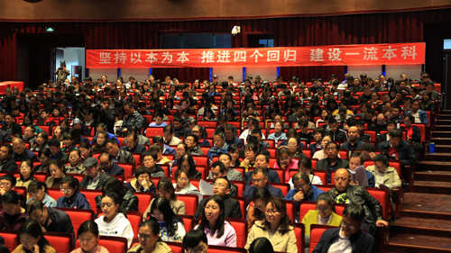 校长张汉燚代表学校作《坚持以本为本 推进四个回归 全面建设一流本科》的工作报告