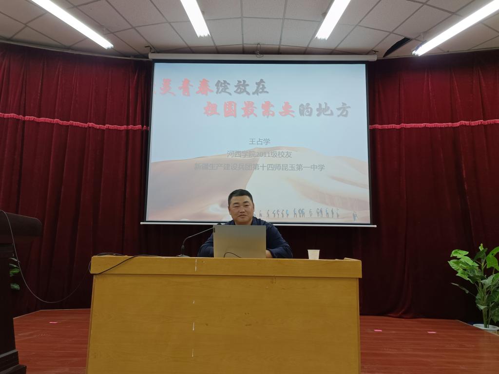10月30日下午,金沙举办优秀校友报告会。小学教育专业2015届优秀毕业生,新疆生产建设兵团第十四师昆玉第一中学老师王占学,做了题为“最美青春,绽放在祖国最需要的地方”报告会。200余名师生参加了此次报告会。