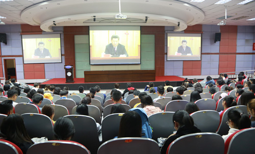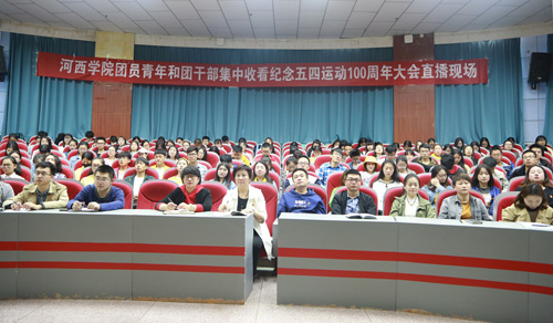 4月30日上午,学校领导黎志强、张汉燚、王兵、张勇、徐德祯、强梅、顾长兆、马聪和校党委中心组成员在教师发展中心集中收看纪念五四运动100周年大会直播。同时,各基层党组织组织干部教师、校团委组织全校团员青年在图书馆二楼报告厅和各二级学院会议室,通过电视、网络媒体第一时间集中收看大会直播,认真学习、热议习近平总书记重要讲话。